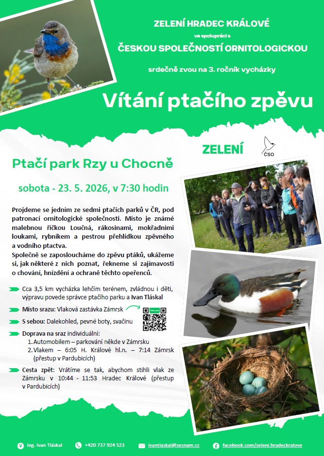 "Vítání ptačího zpěvu" do Ptačího parku Rzy u Chocně